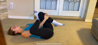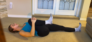 -Pull your right knee in towards your chest and gently pull it closer with your hands